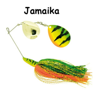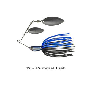 Spinnerbait montato su filo d’acciaio armonico a “doppia densità”. L’occhiello che congiunge il braccio alla paletta principale presenta una saldatura che elimina il rischio di cedimento della pala. L’amo, grande e robusto, è di elevatissima qualità. La forma particolare della testina- Flat Head – garantisce un bilanciamento perfetto e un movimento utile già al primo contatto con acqua. Lo skirt in silicone “fine cut” pulsa come veri schooling fish e le palette, a profilo largo, diffondono forti vibrazioni anche in recupero a bassa velocità. Il modello da 1/2oz. è il più versatile. È’ utilizzabile con variazioni del ritmo, attraverso strutture, erbai, tronchi, pontili, etc. Il 5/8oz., invece, lavora lentamente su fondali marcati ed è ideale da sfruttare a slow-rolling.